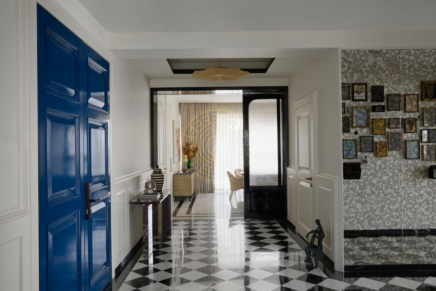 The concept for this space was rooted in the philosophy of yin and yang - a reflection of two contrasting aesthetics, brought together in a unified design language. The black and white checkered flooring, laid across the entrance foyer and passage areas, became the foundation and starting point of the design narrative.