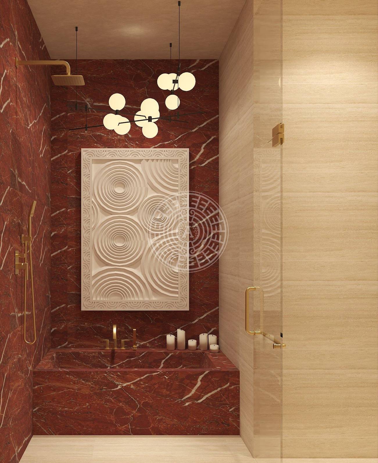 This 7,000 sq ft home in South Bombay is full of details that made designing it such a rewarding experience. The living spaces balance bold gestures like a red entrance door and custom Pichwai art with softer touches like hidden AC systems and fluted glass cabinetry. The master suite brings together hand-carved marble, ocean views, and a private deck, while the daughter’s bathroom plays with sculptural stone and bold red grouting. Every room has its own personality, but together the house feels timeless and deeply personal.