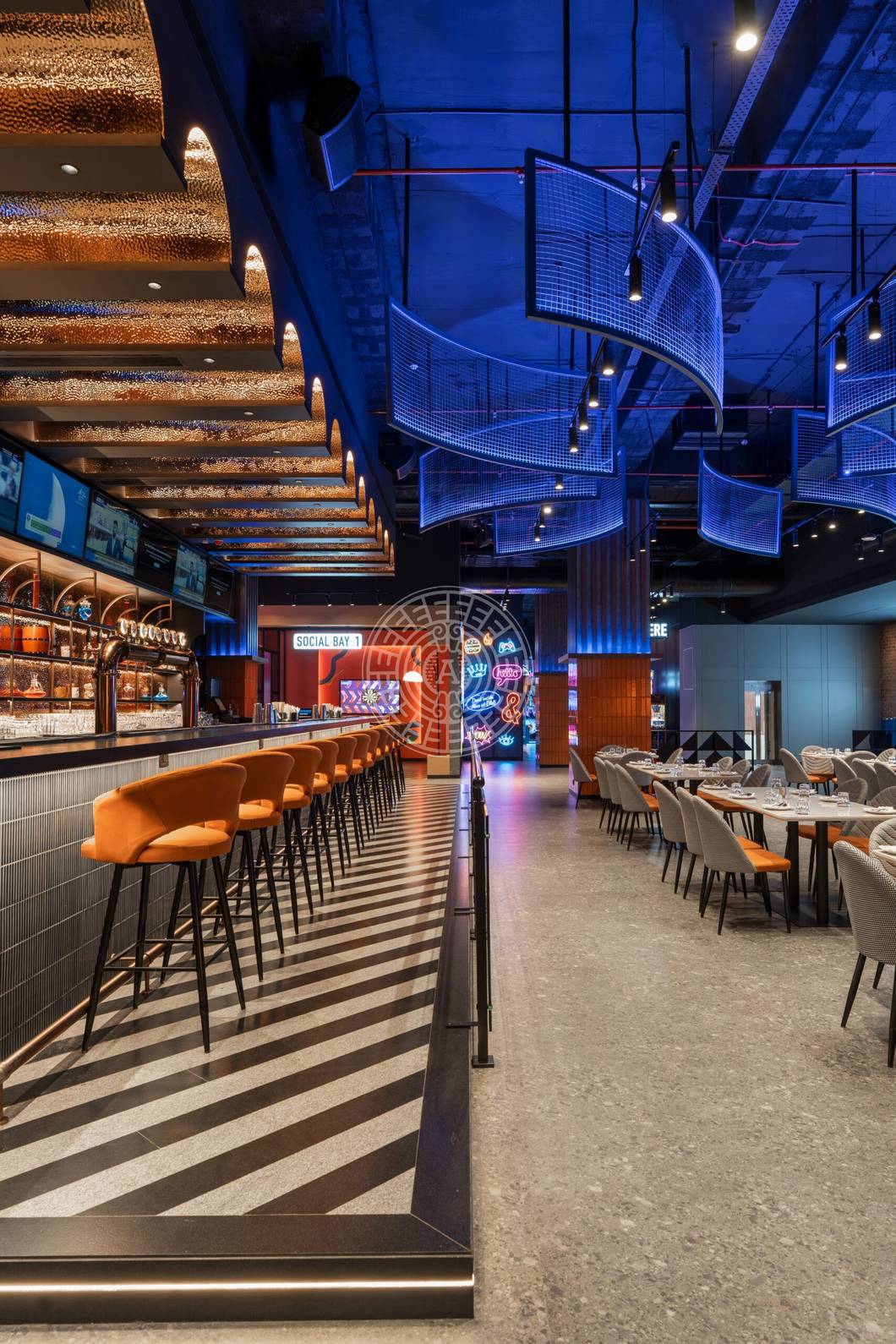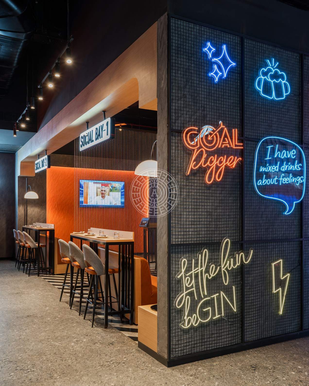 The brief from the clients was to design a 22,000 sqft arcade & restaurant which reflects the brand's identity while integrating conceptual and quirky elements that define the character and experience of the space