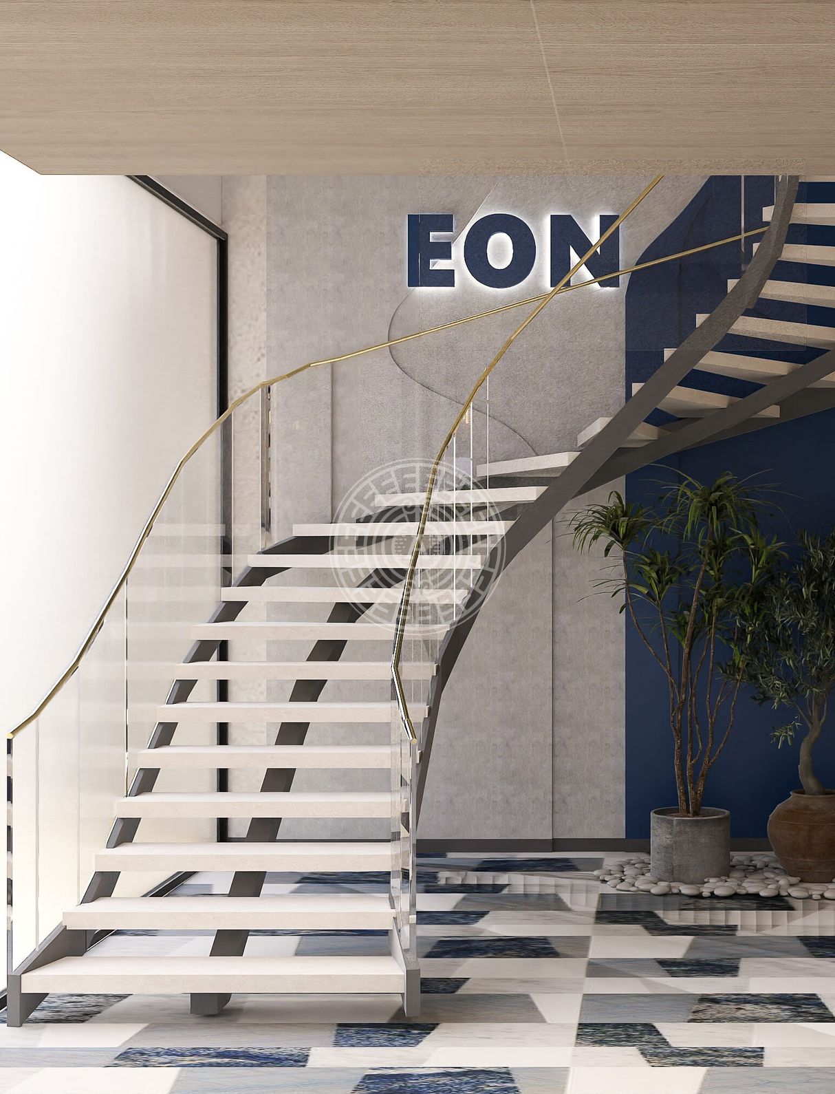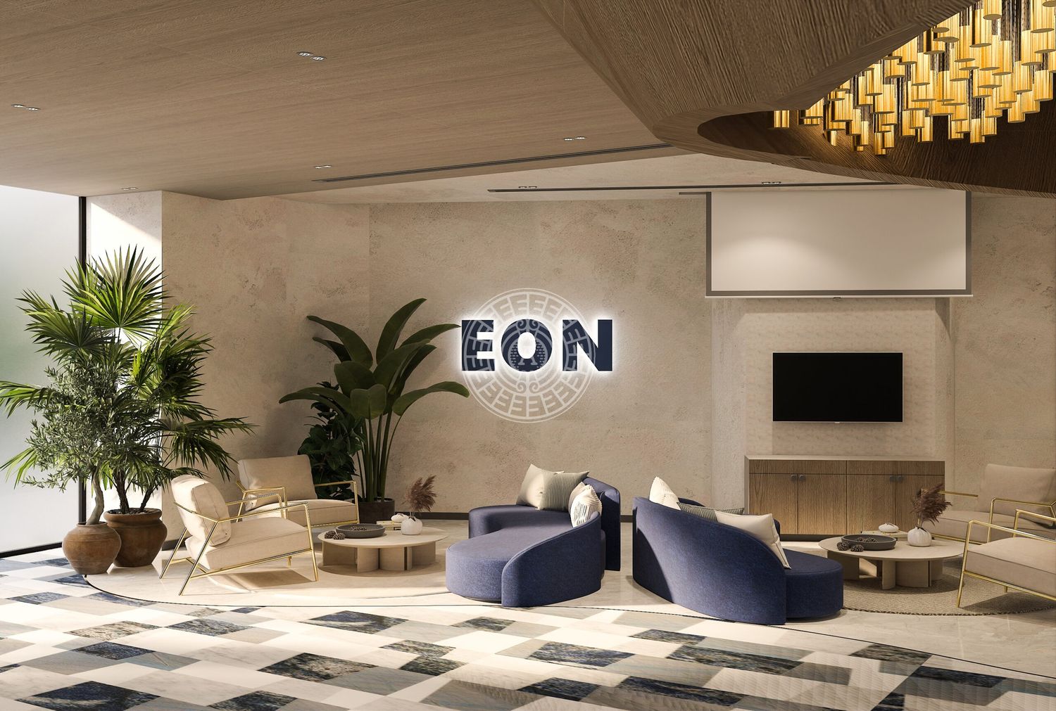 This sea-facing show apartment for EON was designed to feel bold yet inviting, with their signature blue woven throughout. The living area has custom details like a laser-cut AC vent with soft lighting and a warm palette of greys, whites, and browns. The bedrooms balance muted tones with sleek closets and a full blue story with art, pillows, and curtains. From playful bathroom tiles to a chandelier in the foyer, every detail reflects the brand while still feeling like a home.