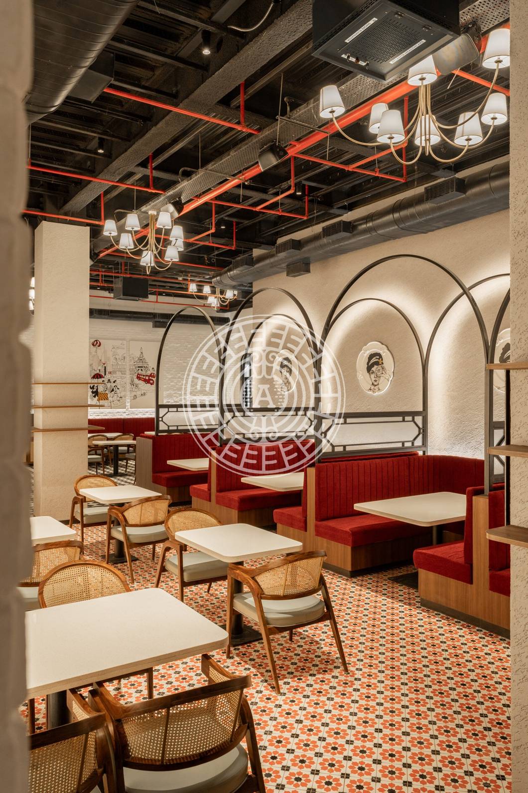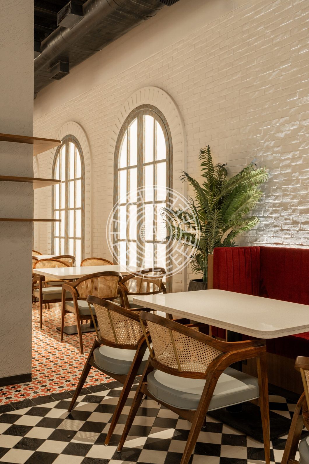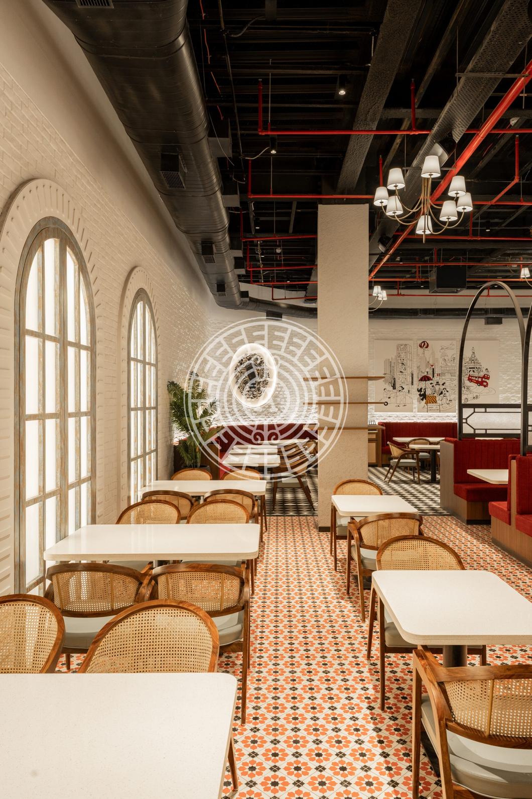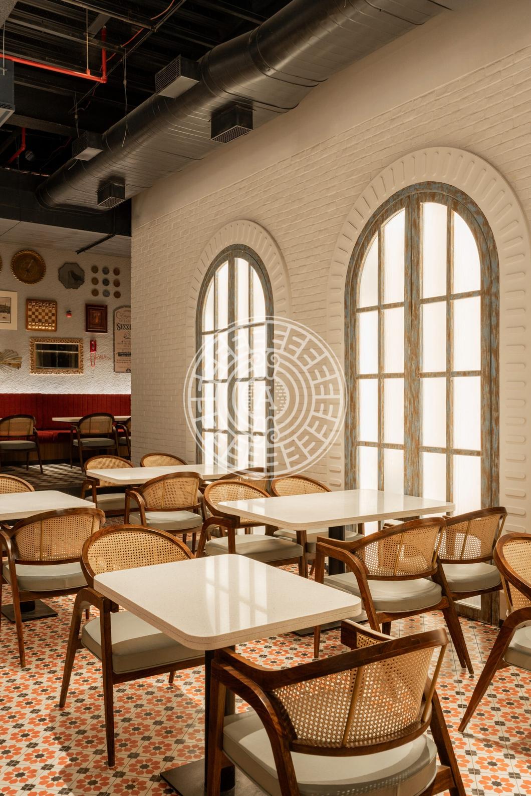 The space was thoughtfully curated to reflect the client's desire for a family-oriented atmosphere. We showcased the charm of the old bombay elements with the help of patterned flooring, natural wall textures with the rustic brick look and the artworks which creatively combines the brand's identity in relation with it's journey of opening up it's chain in lower parel. Overall, creating a space that feels warm, timeless, and truly personalised for every guest who walks in
