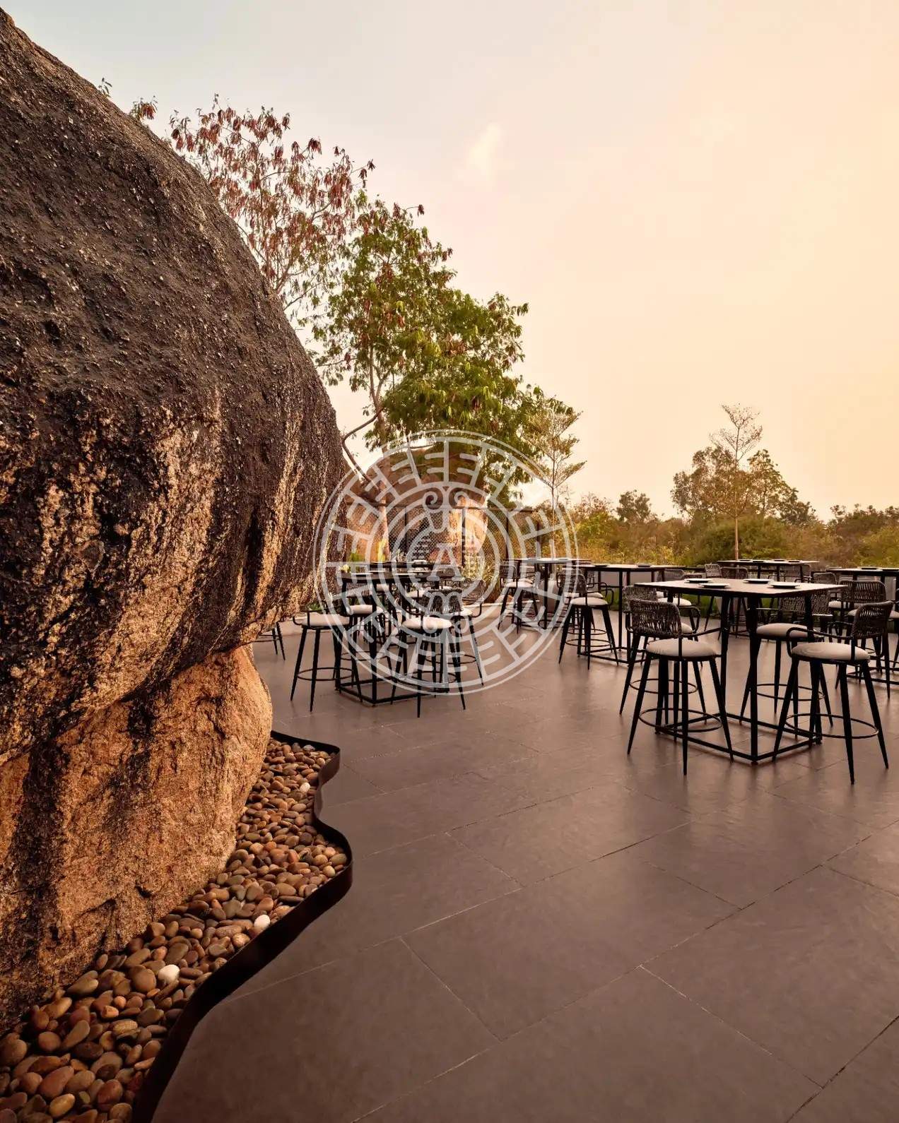 TO design a 15,000 sq. ft., four-story restaurant in Banjara Hills that celebrated the site’s natural boulders and contours, using them as focal points to create a raw yet refined dining experience rooted in nature.