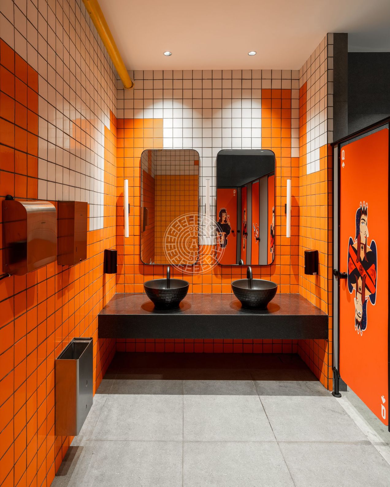 This 22,000 square foot gaming and entertainment space in Mumbai was all about creating an immersive play zone for adults. From a full-scale bowling alley with interactive projection lanes to game-inspired design features like a Tetris wall, Pac-Man entrance, and checked coffered ceilings, every detail was built around the idea of fun. Even functional elements like AC grills and wall finishes were turned into design features. The result is a space that feels dynamic, playful, and true to the spirit of gaming.