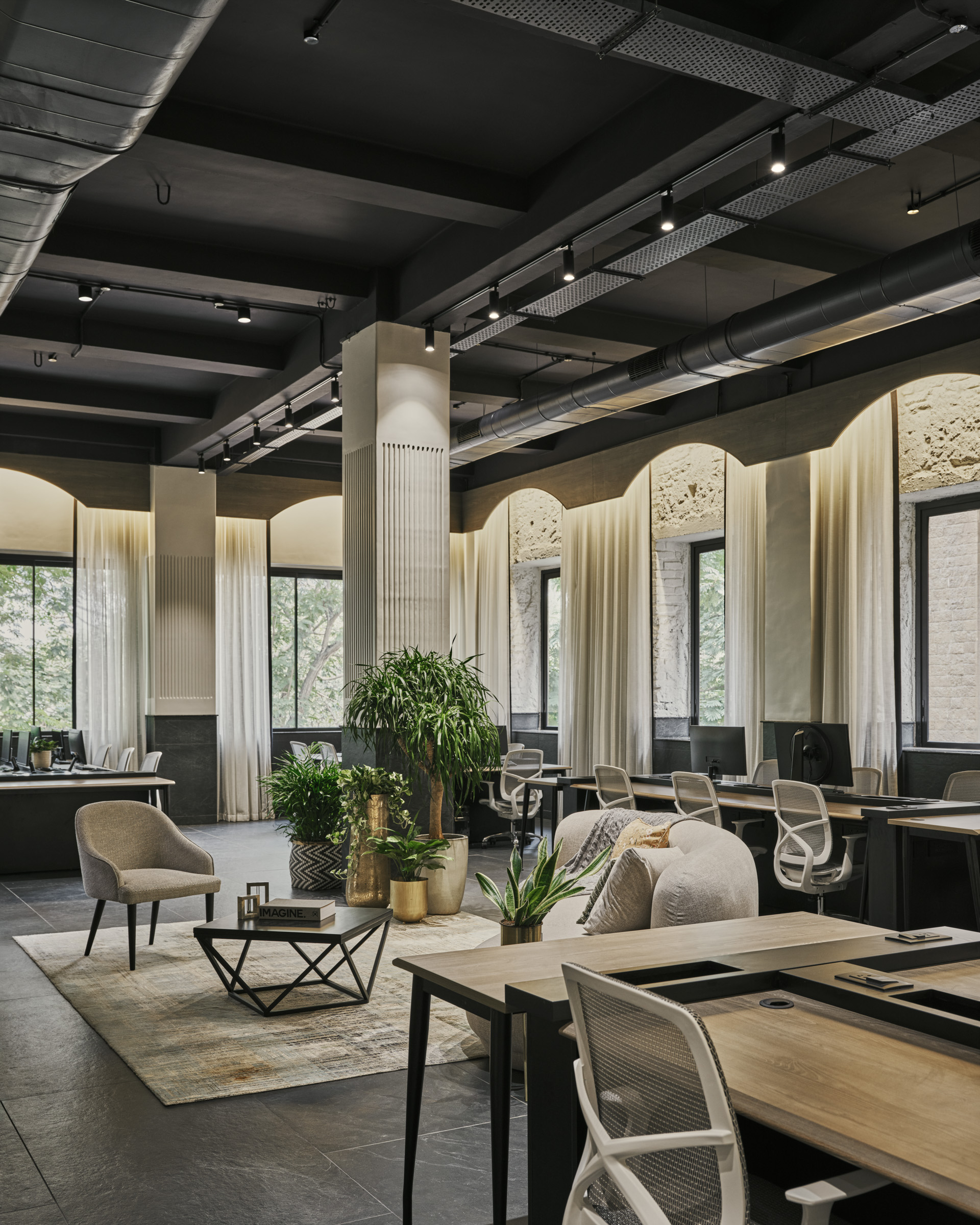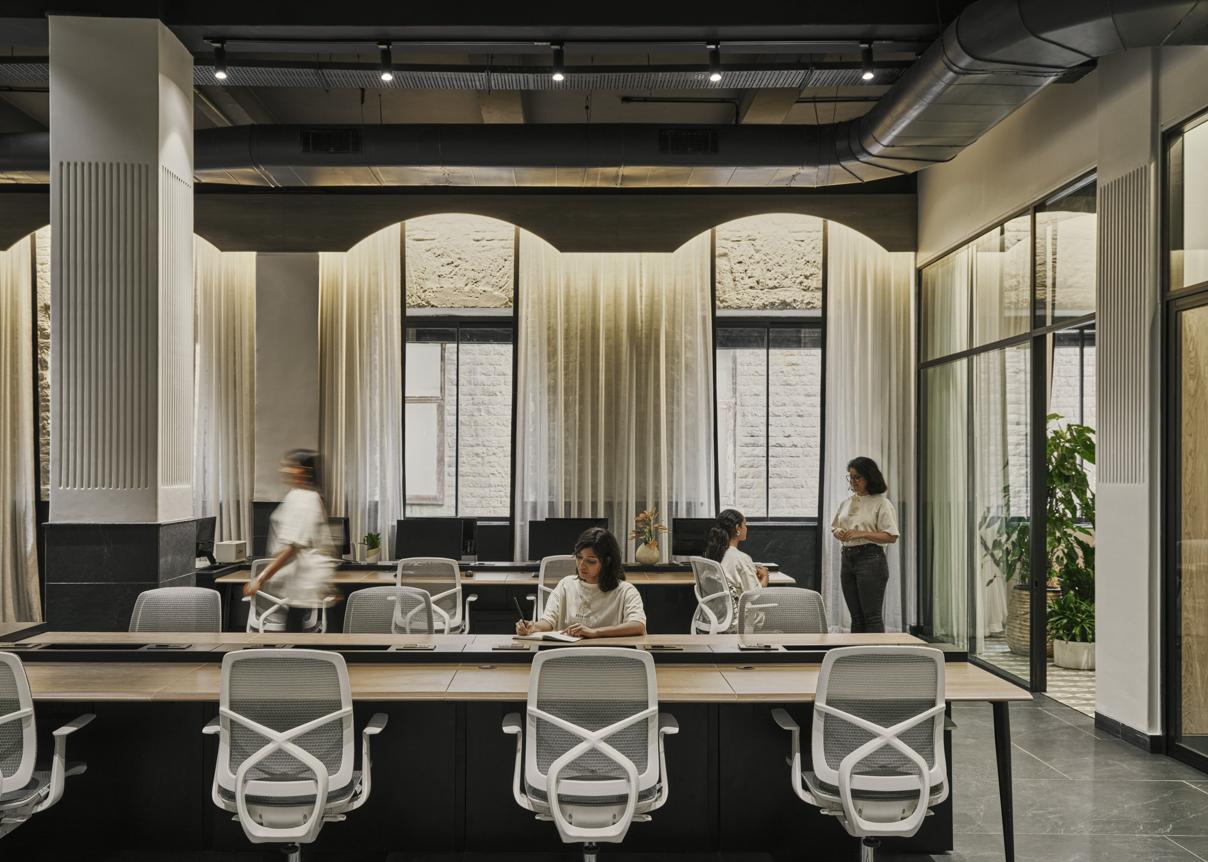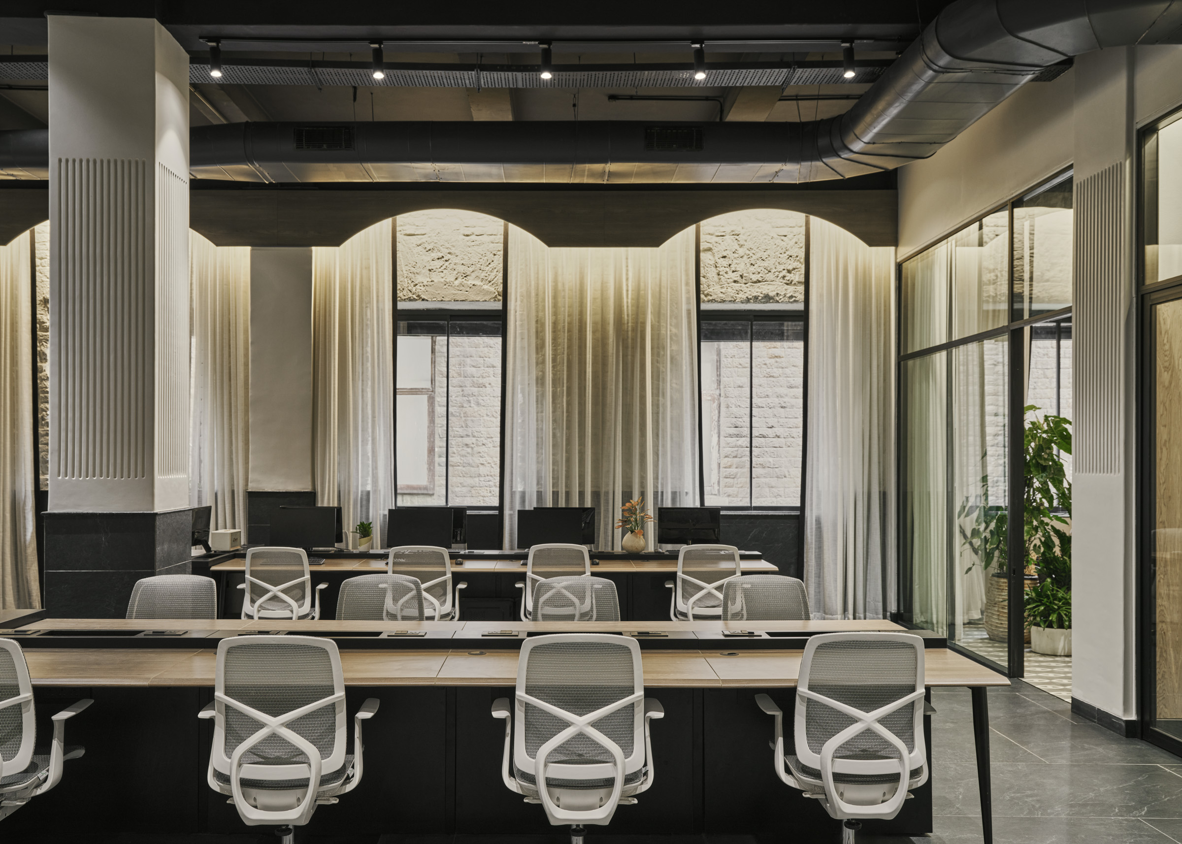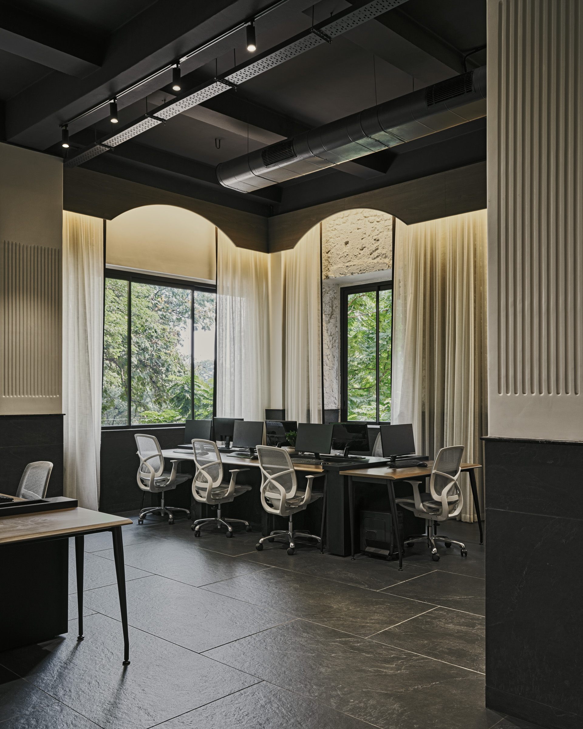 Located in the heart of Mumbai at Ballard Pier, our 4,000 sq. ft. headquarters reflects the spirit of our studio—timeless, functional, and people-centric. Once a lawyer’s office, the space was completely demolished and reimagined into an open, inclusive environment for our 50+ member team. With double-height ceilings, a monochrome palette, and trusted materials from our vendors, it embodies the design ethos we bring to every project—spacious, welcoming, and inspiring creativity every day.