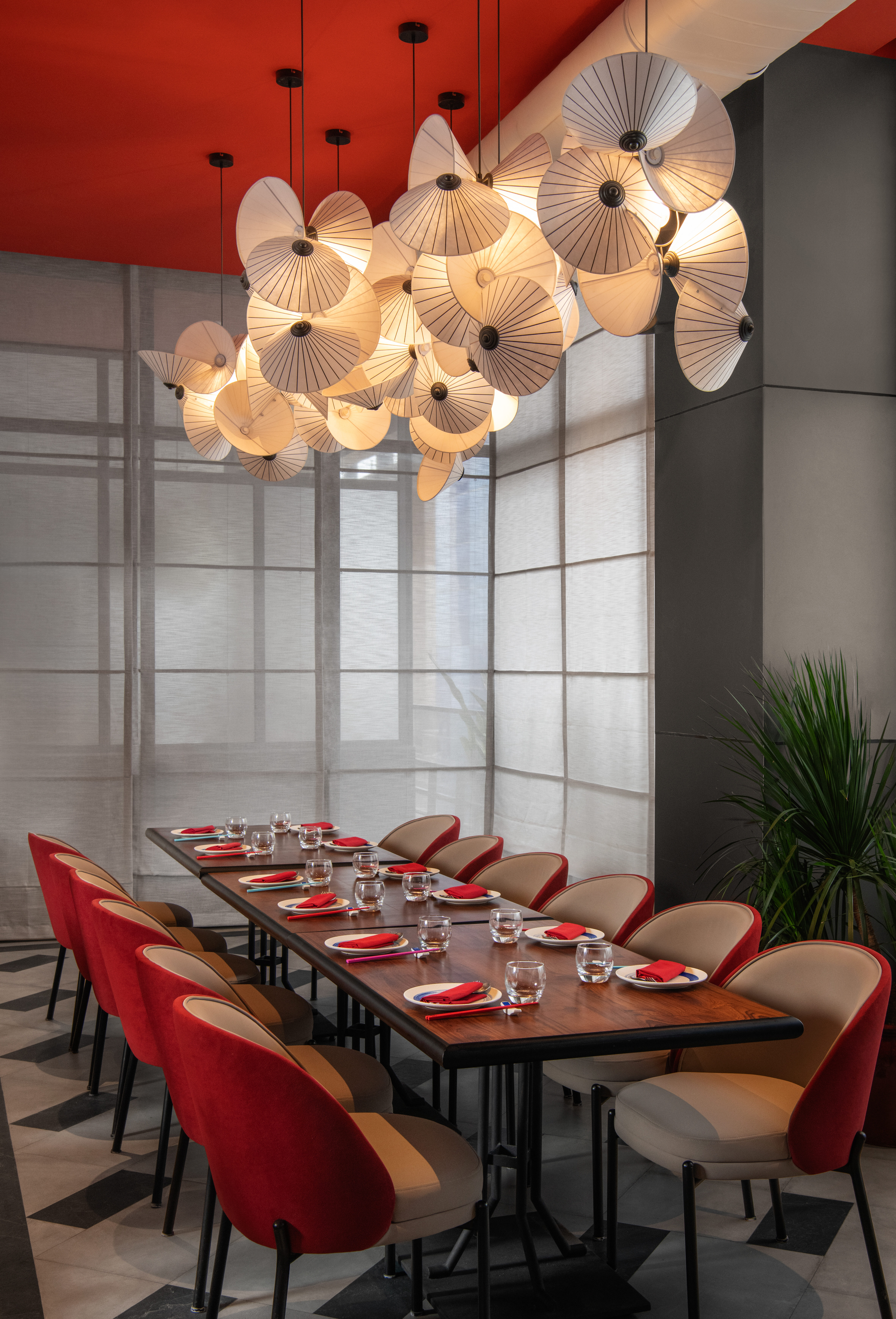 Foo Palladium is our latest restaurant project at Phoenix Palladium, Mumbai. It’s about 6,000 square feet and gave us the chance to bring Foo’s new branding to life. The space has wide passages, booth seating, and pops of colour balanced with calmer tones to keep it warm and welcoming. At the bar, a striking ceiling installation sets the mood, while thoughtful details across the layout make it easy for families and groups to enjoy. It’s Foo, but with a fresh new look for its next chapter.