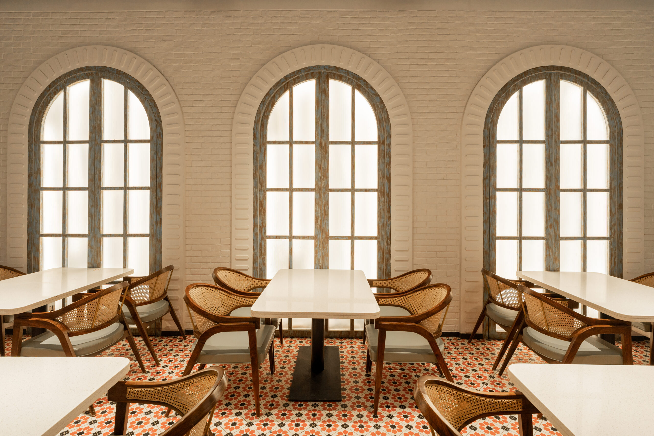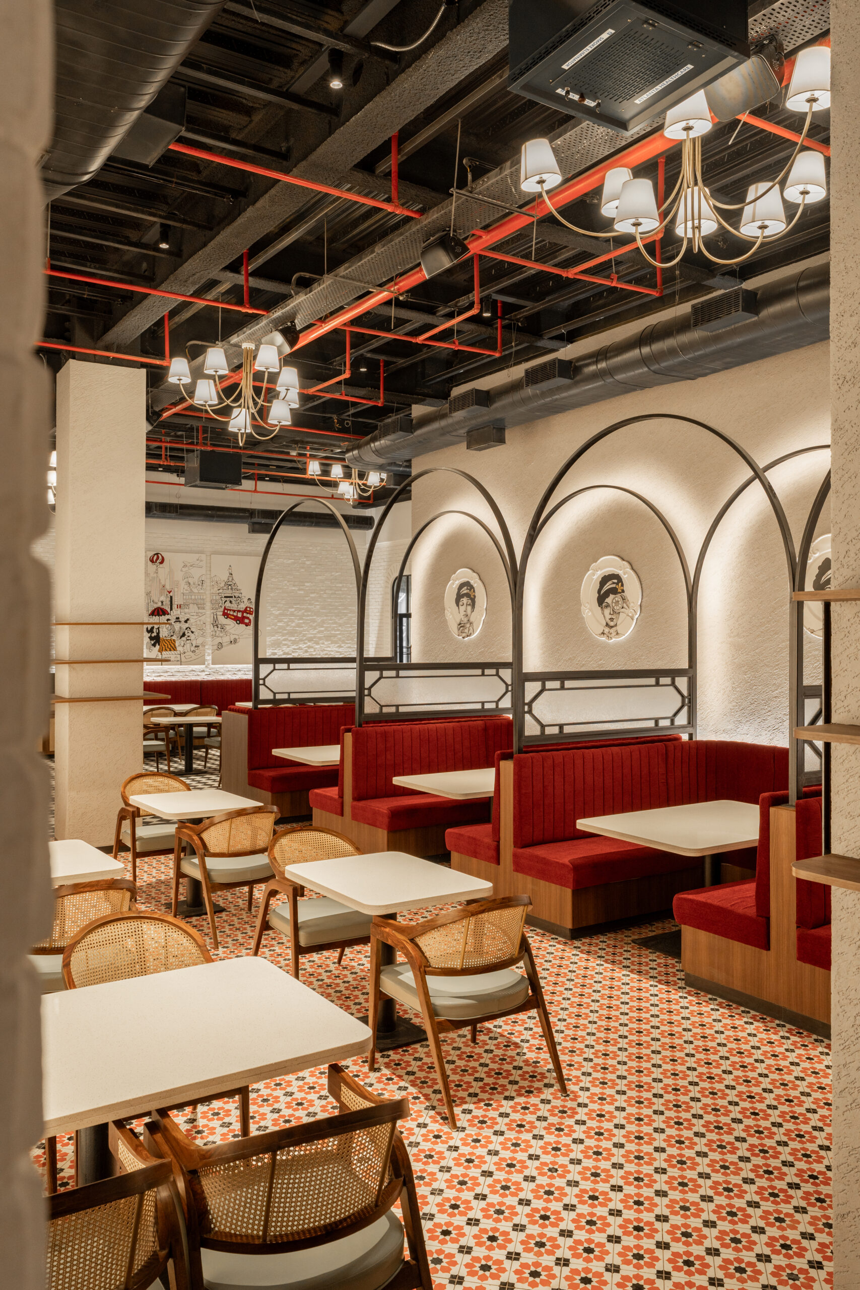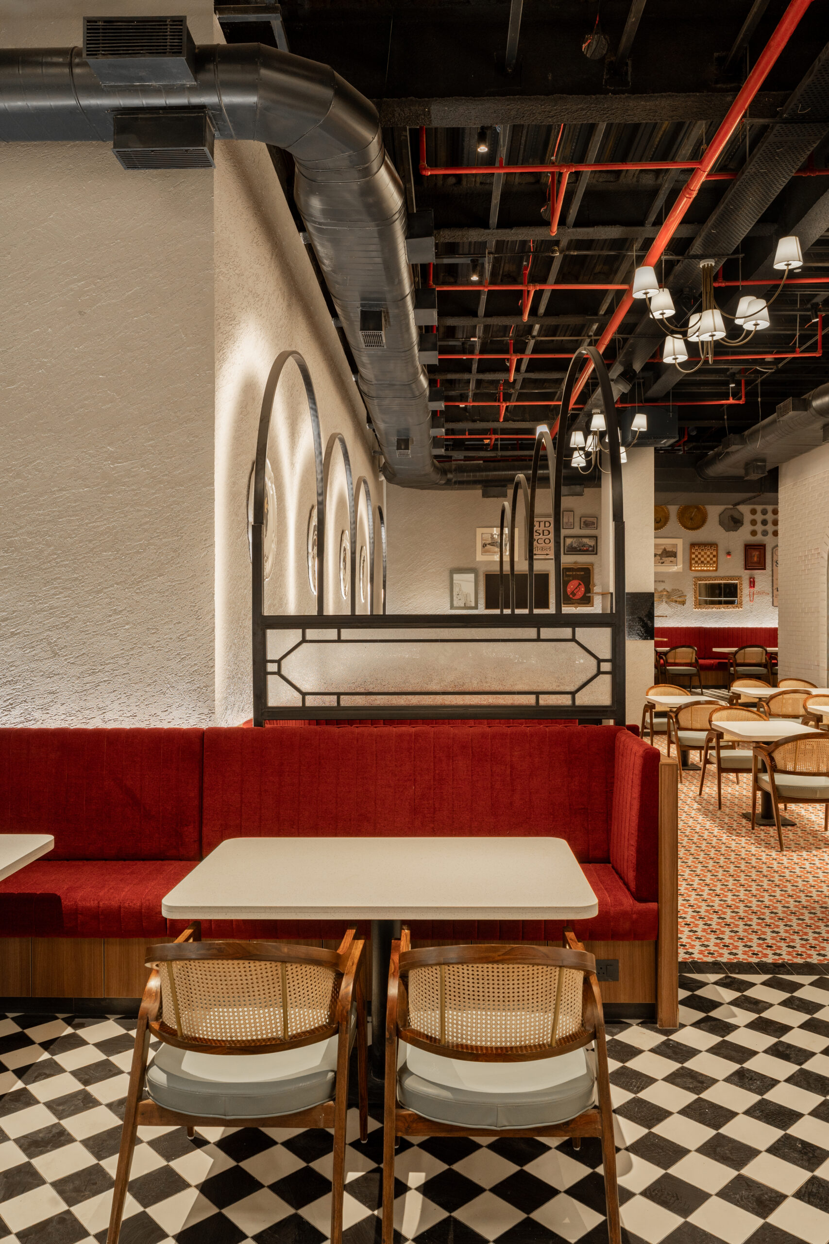 The space was thoughtfully curated to reflect the client's desire for a family-oriented atmosphere. We showcased the charm of the old bombay elements with the help of patterned flooring, natural wall textures with the rustic brick look and the artworks which creatively combines the brand's identity in relation with it's journey of opening up it's chain in lower parel. Overall, creating a space that feels warm, timeless, and truly personalised for every guest who walks in