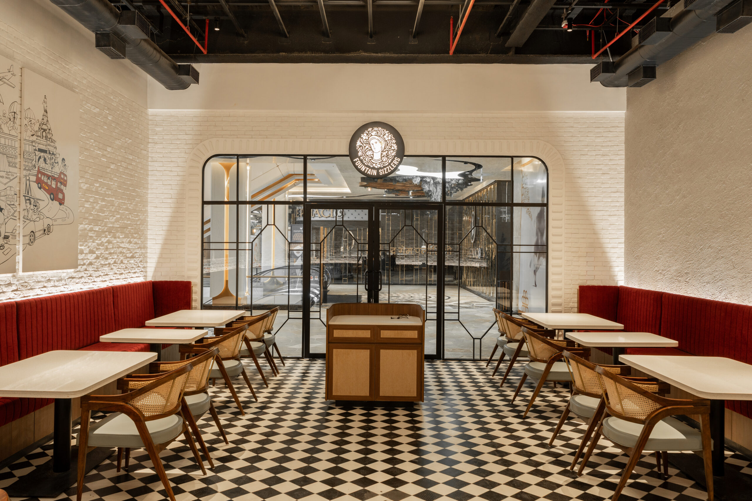 Fountain Sizzlers has been a Bombay favourite for over two decades, and this new space at Phoenix Palladium gave us the chance to reintroduce the brand in a fresh way. The layout was long, L-shaped, and windowless, so we worked with exposed ceilings, lighting tricks, and clever zoning to make it feel open and vibrant. From cane-back chairs and brick walls to booth seating with fluted glass, the design nods to the brand’s history while feeling modern and inviting. We also added curated art and vintage objects to carry forward the nostalgia people associate with Fountain.
